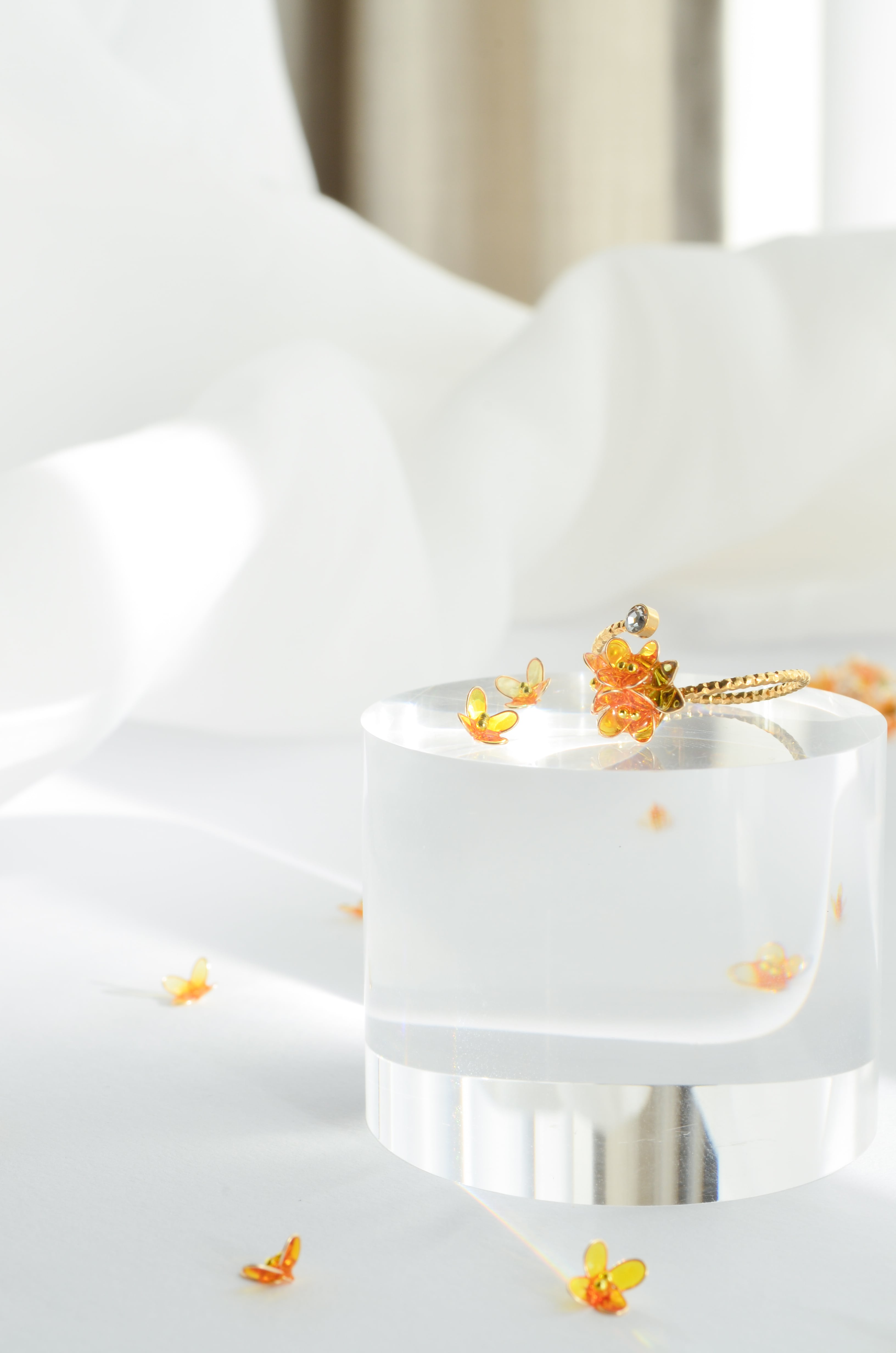 金木犀の透明感のあるオレンジと、反対側に添えられた輝くジルコニアの光が