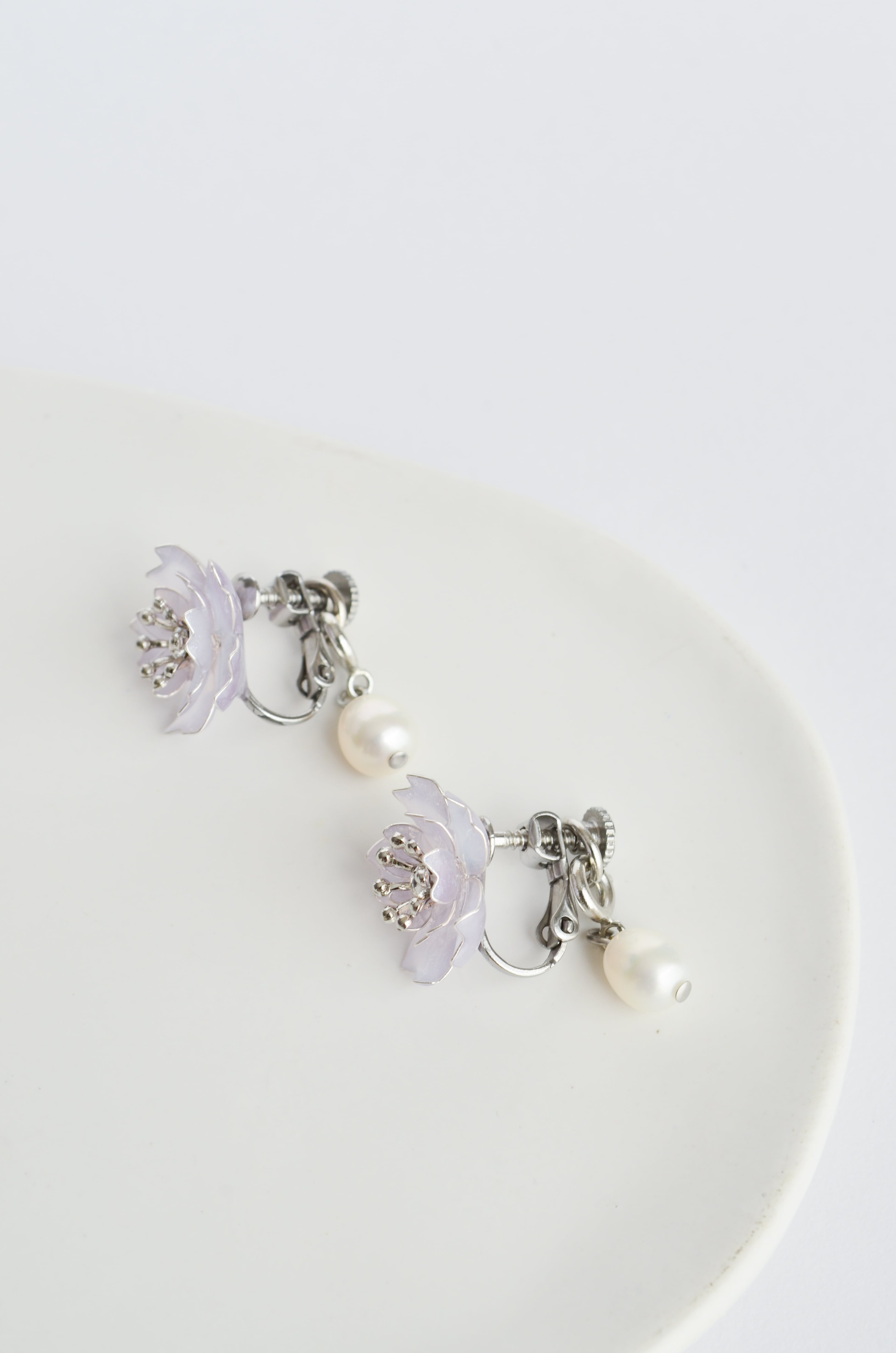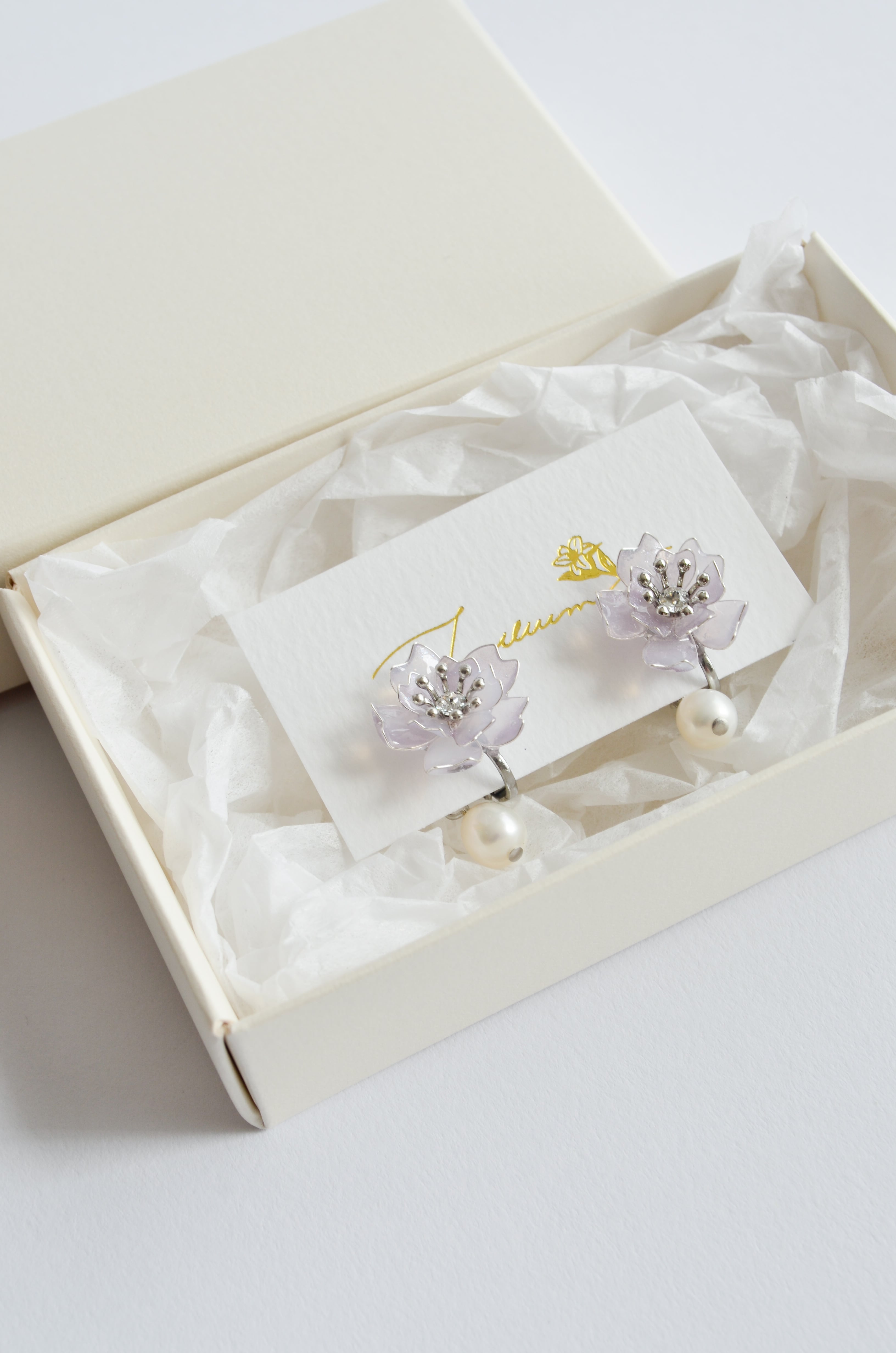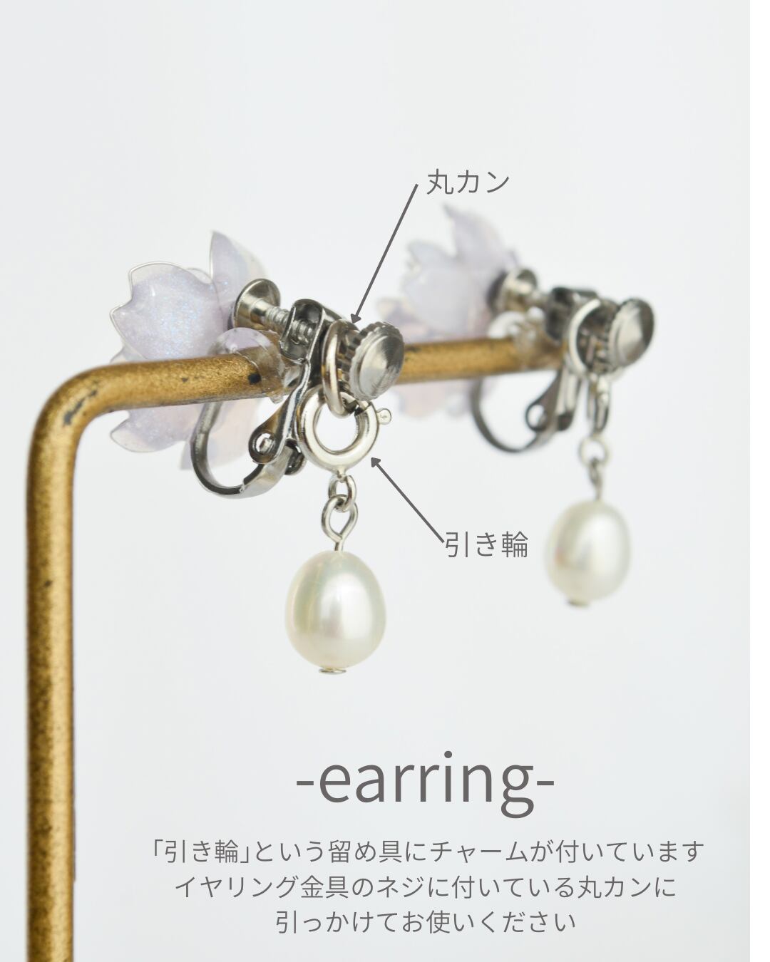 イヤリングは後ろのネジ部分に引き輪を掛ける仕様のため、着脱も簡単です。